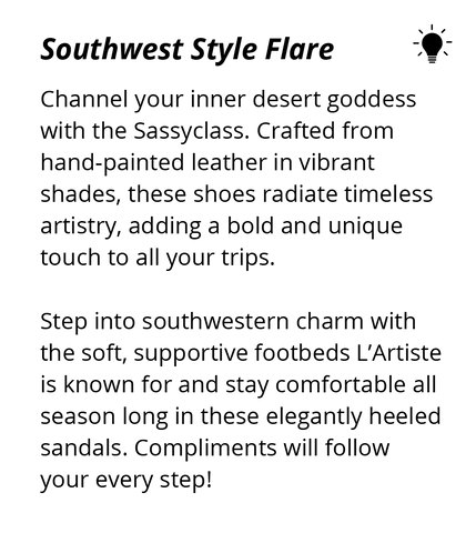 L’Artiste sandals are wearable art! Step into spring with hand-painted floral designs, smooth leathers, and unique hardware. Bold style and artisan charm make these sandals perfect for adding flair to your sunny-day adventures!